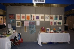I have just done this show in Exeter. It was a great space and although visitor numbers were not great, many people showed interest in my books, printing methods and stitching onto metal frames, of which more later.The weather was cold but not as cold as home and we had rain instead of snow which was a lot more manageable.